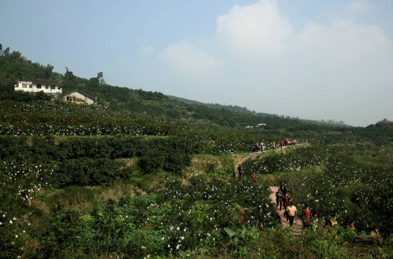 “山上种柑橘,山下住楼房,家家有小车,新年新畅想。”这说的,就是成都蒲江长秋新村里的生活。66 岁村民蒋怀军说,2012 年大家伙儿一起从长秋山上集中搬了下来的时候,内心还充满踌躇,五年间,生活却发生了翻天覆地的变化。