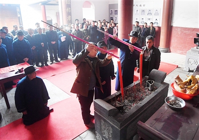祭祀先祖是该村一项隆重的民俗活动,源于“百善孝为先”和“慎终追远”的传统观念,在新年第一天一大早举行祭祀仪式,是对祖宗先辈表示孝敬之意和表达怀念之情,同时也是感恩追始,祈求保佑。本网记者 周亮摄