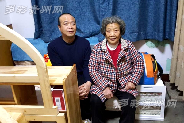 回家过年,母家福不忘拉上老母亲合影一张。他说,母亲的一桌好菜,就是家的味道。