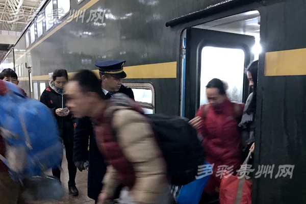 这是从草海站开往贵阳的K9587次列车。春节假期进入尾声,外出的游子也开启了“返程模式”。