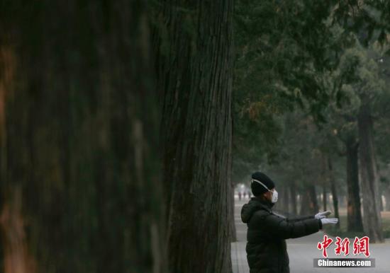 2月4日,一位老人在北京天坛公园健身。中新社记者 刘关关 摄