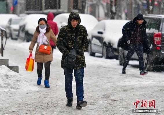 昨天,新疆乌鲁木齐雪花纷飞,路面出现积雪。图片来源:中新网