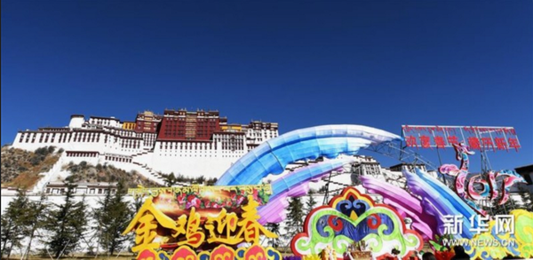 拉萨布达拉宫广场的春节装饰。新华社记者 普布扎西 摄