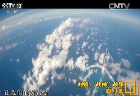 刘锐:看到了泻湖一样的环形岛礁,我们的黄岩岛,非常兴奋,我当时突然有一个想法,既然我们来了,我为什么不能用我的相机,让我们的轰-6K,让我们的黄岩岛,在一个画面出现。