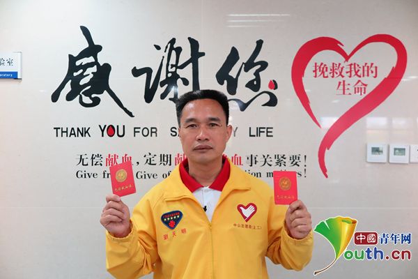 2001年从部队退伍的刘天明选择了保安这一行业,在把本职工作做好之外,便开始用公益来填补业余生活。他坚持志愿服务,累计超过1万小时,成为中山市第一个加入志愿者队伍的农民工,更是连续10年参加义务献血3600多毫升。