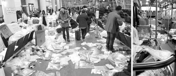 在写下这段文字的同时,卢某上传了济州机场国际线候机室里“仿佛垃圾场一般”的照片(见上图)。该报道说,垃圾主要是免税品的包装纸箱和塑料包装材料等。中国游客在候机室附近的免税品柜台领到商品,拆开包装拿出物品后,就直接把垃圾扔到候机室地上。这似乎是为了回国时减小免税品体积,躲避海关检查。