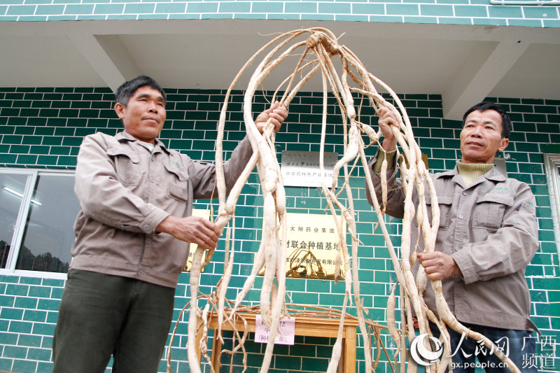 黄翰早的幸福生活与一种叫“牛大力”的中药材有关。2013年,借着精准扶贫的东风,邕宁区邀请南宁广泽农业开发有限公司进驻那楼镇屯了村,建设“广西道地中药休闲养生产业示范园——壮药大观园”牛大力种植示范基地,计划用这种被称为“南方人参”的药食两用药材发展规模化种植,带动当农民脱贫致富。