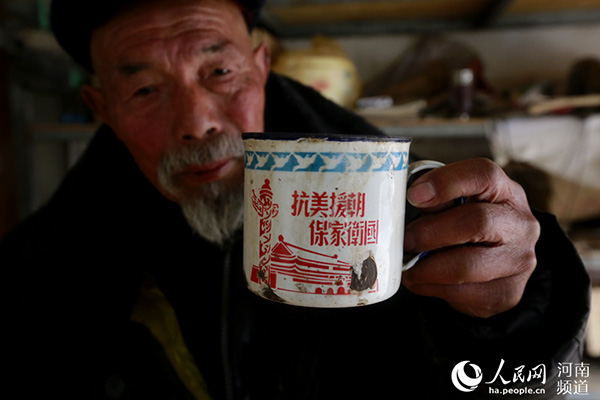 “舍茶斋”的主人是85岁老人周群政,一名抗美援朝老兵。1953年,他从部队转业回到村里,成了一名农民。由于村庄在311国道旁,过往赶马车的、拉煤的群众经常到村里讨茶喝,热心的周群政有了在村口摆“舍茶摊儿”的念头。
