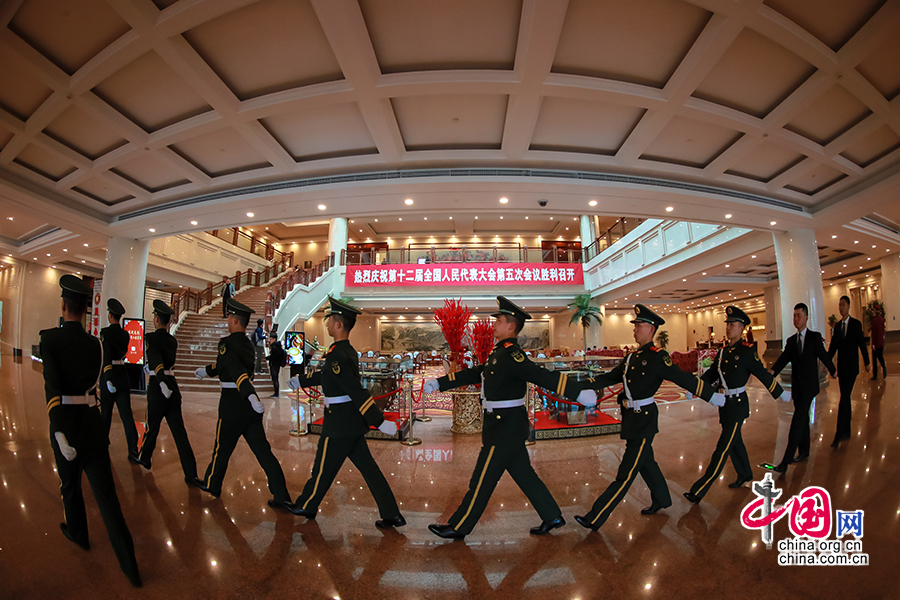 走上哨位:武警官兵正式开启两会安保模式 “大门哨兵,请上哨”,随着领班员命令的下达,3月1日,武警北京总队八支队两会住地警卫中队的官兵正式走上哨位,进入两会安保模式。带队干部李青松对记者说,官兵在前期集训中组织了十余个课目的训练演练,在执勤设上进行升级换代,高标准、严要求,确保执勤工作万无一失。