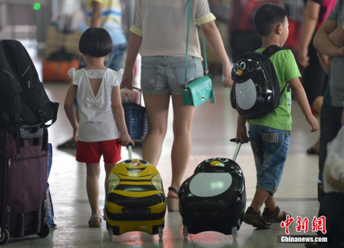资料图:在福州火车站一些外来务工人员的子女像候鸟一样,在暑假期间迁徙回家。中新社发 张斌 摄