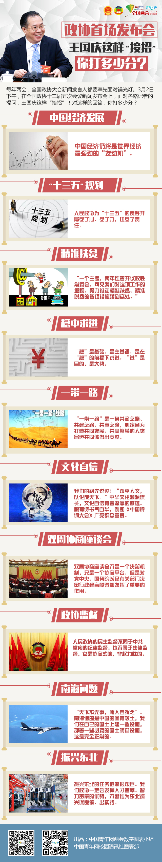 每年两会,全国政协大会新闻发言人都要率先面对镁光灯。3月2日下午,在全国政协十二届五次会议新闻发布会上,面对各路记者的提问,王国庆这样"接招"!对这样的回答,你打多少分?