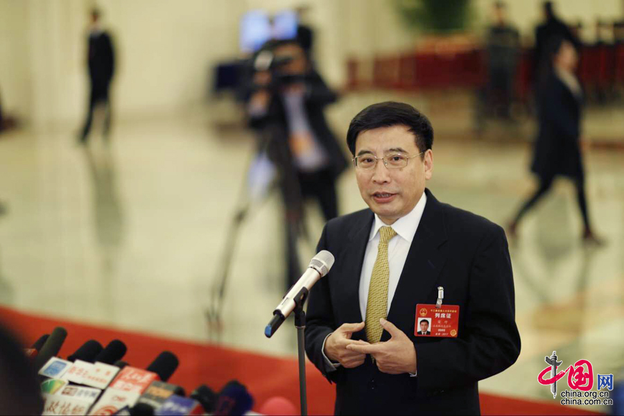 3月5日,第十二届全国人民代表大会第五次会议在北京人民大会堂开幕。图为工信部部长苗圩接受记者采访。 中国网记者 杨佳摄影