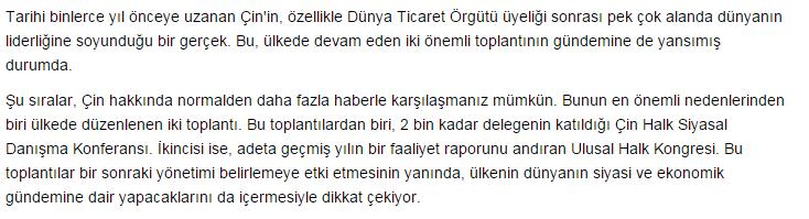 我们也可以从经济角度来观察两会。通过“一带一路”建设来振兴古老的陆上和海上丝绸之路,对于中国加强其在从亚洲东部延伸到欧洲最西端、甚至是非洲东海岸的这一片辽阔区域的影响力来说极其重要。其实,建设“一带一路”也是王毅部长关于国际关系中合作共赢关系的具体体现。如果我们在充分理解上述讲话的基础上,再来回顾中国驻土耳其大使郁红阳在两会开幕前夕的一次讲话,就能更深地理解其意义。郁大使在伊斯坦布尔举办的“中国新年晚宴”上表示,中国是土耳其在全球的第二大、在亚洲的最大贸易伙伴,两国在交通、能源、电子商务、农业和质量监督等领域将加强合作,这种合作当然包括两国领导人之间的互访和共同参与“一带一路”建设。事实上,“一带一路”倡议的影响在沿线国家已经有所体现。它所创造的就业机会并不局限于中国国内,它为沿线国家和城市的经济发展作出了巨大贡献。可以说,“一带一路”倡议前景光明。