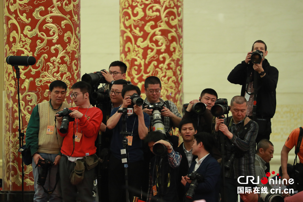 为了抢占有利地势,记者们不惜在会场外通宵排队,现场内更是长枪短炮云集,掀起媒体大战。甚至在阶梯背后,也有媒体工作人员席地而坐聆听总理发言、忙碌工作的身影。