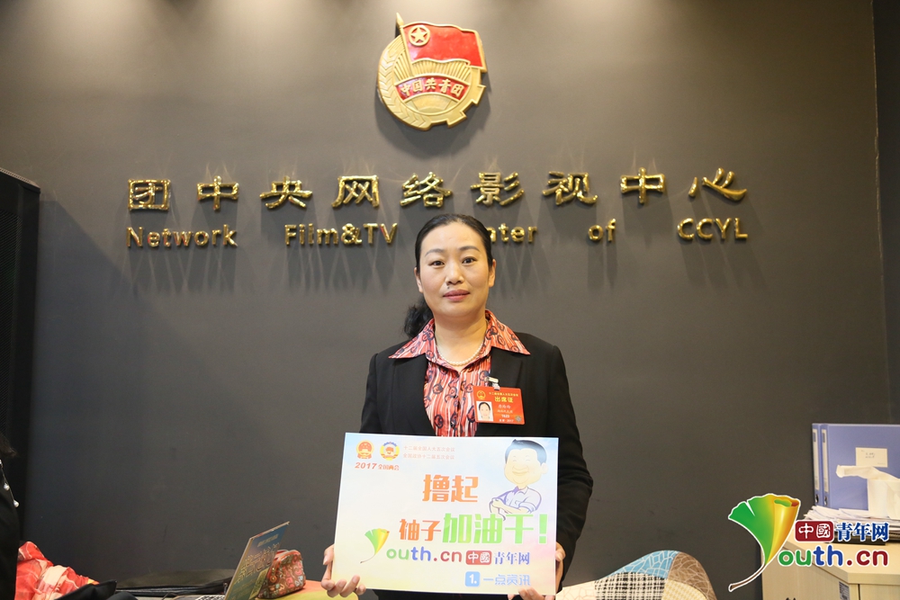 全国人大代表、全国劳动模范、际华3542纺织有限公司的一线职工代表唐玲玲。中国青年网实习记者 徐利德摄