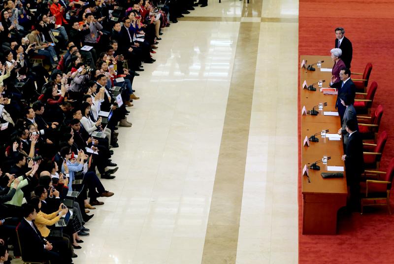 图为3月15日,国务院总理李克强在北京人民大会堂与中外记者见面,并回答记者提问。中国日报 武治义 摄