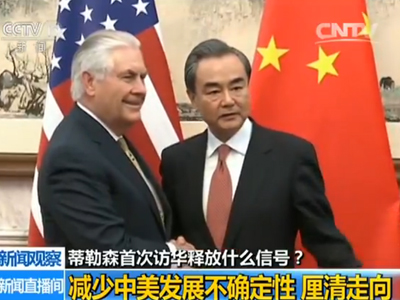 继中美元首新年通话、中美高官系列互动之后,蒂勒森此次访华,再次释放出积极信息:中美关系正在回归良性互动与合作的正轨,同时为实现两国元首以及各个级别的交往、拓展各领域的合作铺顺道路。