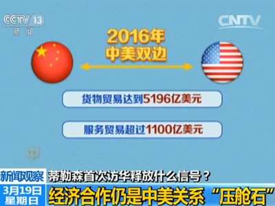 近一段时间以来,中美互动频繁。2月10日,中国国家主席习近平与美国总统特朗普通电话。2月17日,中国外交部长王毅与蒂勒森在德国会晤。2月21日中国国务委员杨洁篪与蒂勒森首次通电话、并于28日访美与蒂勒森举行会谈。专家表示,时隔半个多月,蒂勒森访华与中国高层面对面会晤,中美将厘清两国关系发展的走向,向世界发出中美关系未来聚焦合作的明确信号。