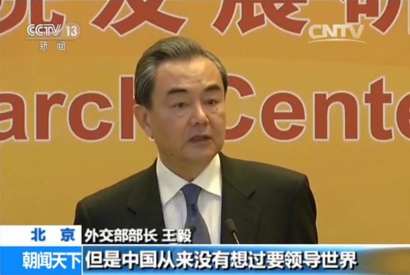 外交部部长王毅:中国作为世界第二大经济体和联合国的安理会常任理事国,我们愿意积极地承担自己应尽的国际责任,通过我们自己的努力,中国正在成为国际形势的稳定锚,世界增长的发动机,和平发展的正能量,全球治理的新动力。但是中国从来没有想过要领导世界。
