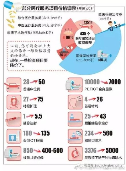 ②435项医疗服务项目价格随之调整,其中CT、核磁等大型检查设备收费大幅下降。