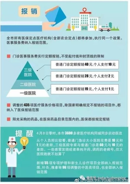 ①4月8日零时起,全市3600多家医疗机构取消挂号费、改收医事服务费。