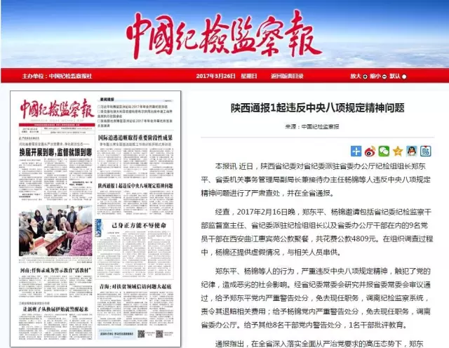 据《中国纪检监察报》报道,近日,陕西省纪委对省纪委派驻省委办公厅纪检组组长郑东平等人违反中央八项规定精神问题进行了严肃查处,并在全省通报。