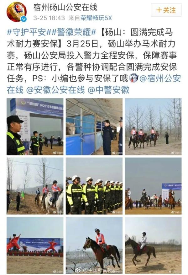 25日,安徽@宿州砀山公安在线 称:“近日马术耐力赛在砀山举办,警方保障赛事有序进行…”一条很平常的微博,回复里警嫂一句:“可以把我老公还给我了吧”,令无数网友心酸……她的老公,就是负责安保的砀山刑警队的一员。为爱坚守,致敬!