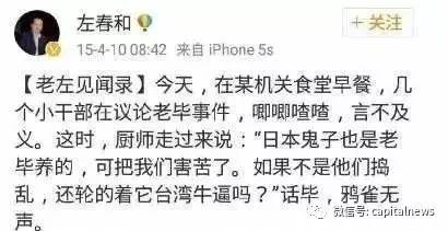 长安街知事APP发现,左春和曾在微博上十分活跃,经常发表涉及时事政治和历史人物的评论,细心的网友就做过一些收集。