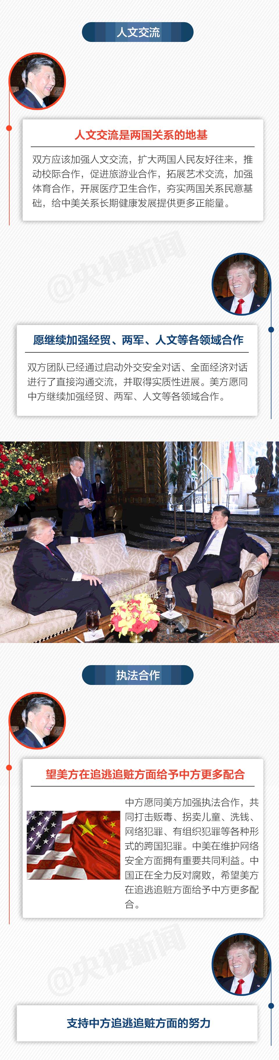 两国领导人将保持密切往来。习主席邀请特朗普年内对中国进行国事访问,特朗普愉快接受。美官员此后与媒体确认,特朗普将于今年访华。高层往来是中美关系保持热度的有效方式,也是两国就重要问题进行对表的必要途径。