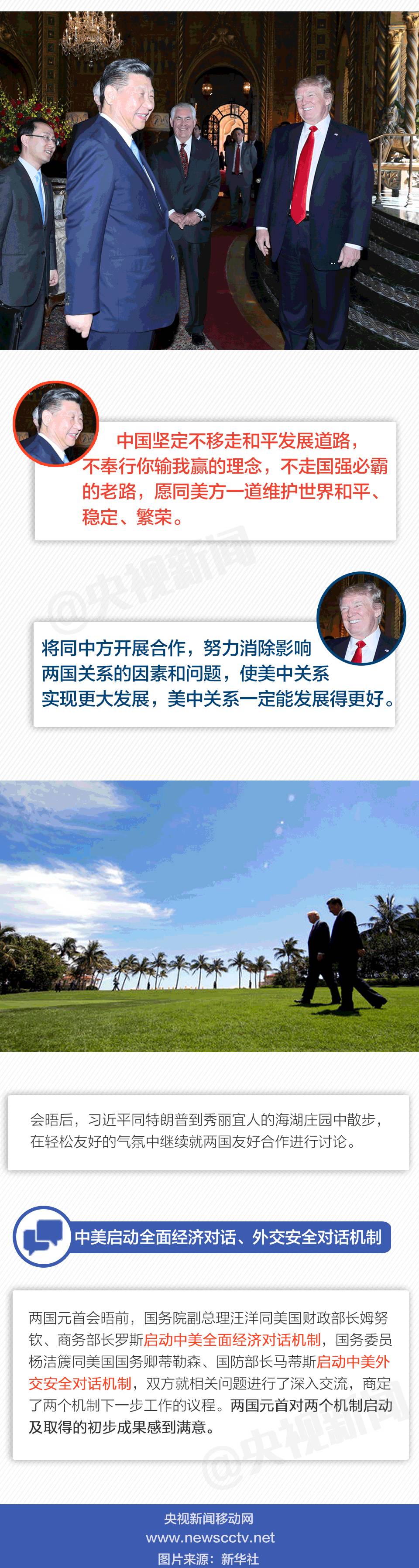 4月6日至7日,国家主席习近平赴美国佛罗里达州海湖庄园,同美国总统特朗普举行中美元首会晤。这是美国新政府就职以来中美两国元首首次会晤,受到各界广泛关注。