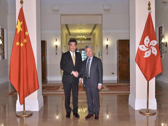 香港特别行政区行政长官梁振英今天(12日)下午在礼宾府与亚洲基础设施投资银行(亚投行)行长金立群会面,就双方共同关心的课题交换意见。
