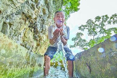 黄大发说,“大发渠的溪水捧起来就可以喝”。田维野摄/光明图片
