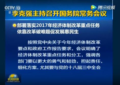 4月5日的国务院常务会议,部署落实今年经济体制改革重点任务,共五项:一是供给侧改革。二是服务型政府的改革。三是创新改革。四是五项具体领域的改革,即,财税金融、国企国资、对外开放、生态环保等改革和农业供给侧结构性改革。五是民生领域的改革,即养老保险、教育、医药卫生等社会领域改革和脱贫攻坚。