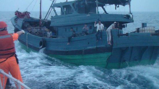 大陆渔船渔民阻止海巡人员登船(“澎湖海巡队”提供)