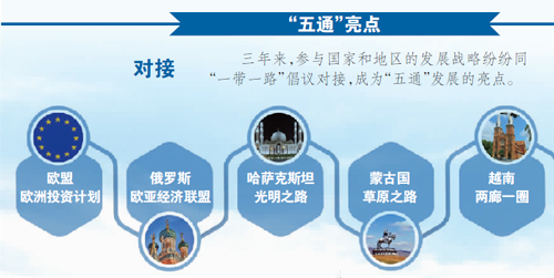 本版以图文形式,为读者回顾总结三年多来“一带一路”建设的“五通”成果。