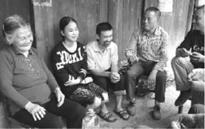 两份粽子摆在刘奋勇家桌上。一份是村干部送的,一份是刘艳容家送的。犁田的刘奋勇见不约而同两路人来送粽子,赶紧回家招呼。妻子刘腊蓉因患类风湿性关节炎瘫痪已经10年,看上去比一个月前略有好转。坐在门前椅子上,连声说“谢谢!”