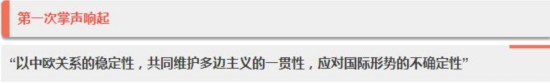 这个片段获得了观众的两次掌声,因为总理开始举起了一只手表示“赞成”,意识到“不对”后,总理又举起了双手,让掌声更加经久不息。这尤其凸显了中欧工商界人士对两国在投资领域达成共识的期待。