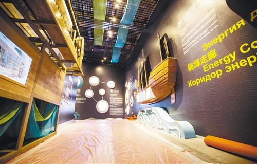 这是6月7日在哈萨克斯坦阿斯塔纳专项世博会中国馆内拍摄的“能源走廊”展区。 本届世博会中国馆围绕“未来能源 绿色丝路”主题,通过实物模型、电子和机械沙盘、多媒体装置、虚拟现实技术、3D弧幕电影等方式,全面介绍了中国在能源开发与利用进程中的代表性成果。 (新华社发)