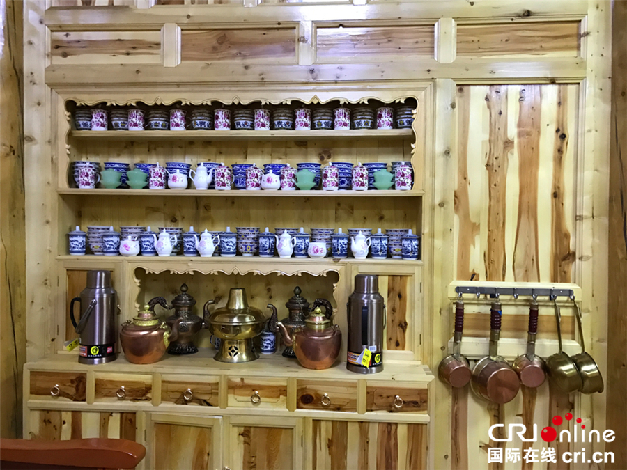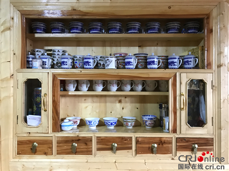 橱柜内摆放的整齐有序的茶杯茶壶也是藏民家里的“美丽风景线”