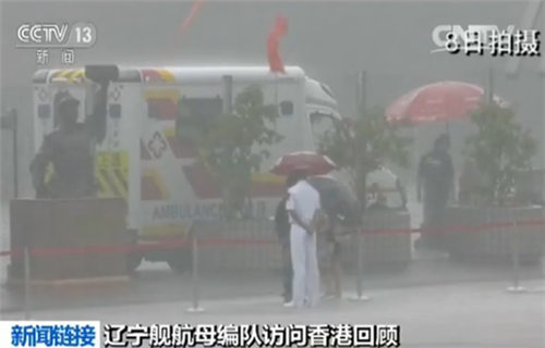 香港市民有机会登上辽宁舰航母编队的3艘属舰济南舰、银川舰和烟台舰参观,一睹属舰风采。即便是暴雨连绵,也挡不住市民的热情。8日,记者在昂船洲军营捕捉到了感人的画面,倾盆暴雨中,多位市民自发为执勤战士遮风挡雨,这一幕感染了更多前来参观的市民,也温暖了现场执勤官兵的心。