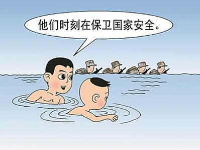 小时候,爸爸也带着我去游泳,海边也有武装泅渡的解放军叔叔。