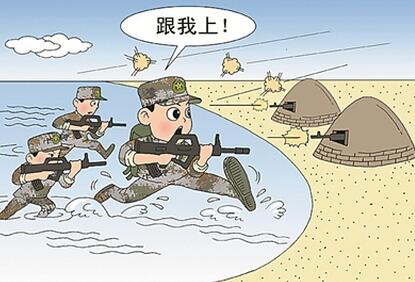 “冲啊!”作为先锋班的排头兵,我跃出海面,向着海岸边的模拟暗堡冲去。