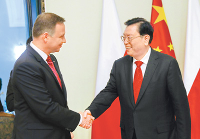 7月12日至16日,应波兰众议长库赫钦斯基邀请,全国人大常委会委员长张德江对波兰进行正式友好访问。这是7月16日,张德江在华沙会见波兰总统杜达。