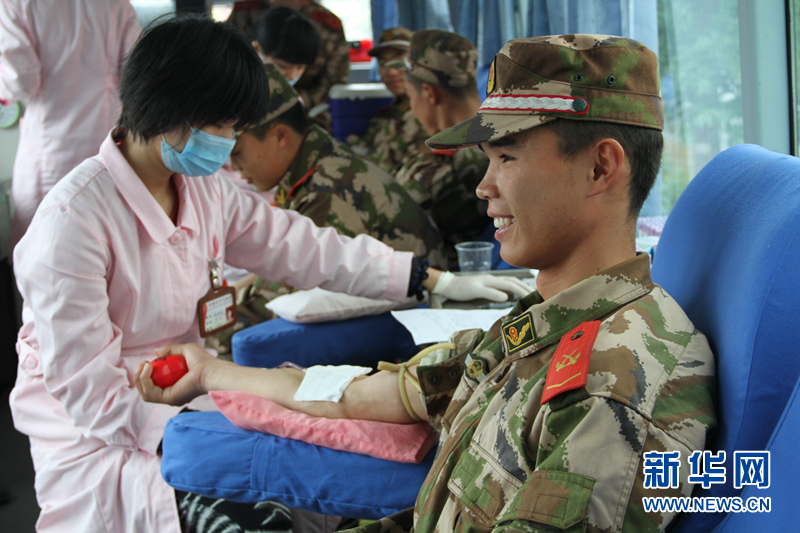 2012年2月,中队官兵正在进行无偿献血。新华网发(和平中队供图)