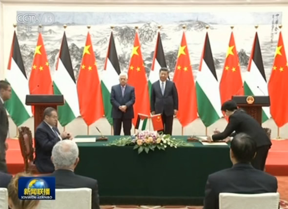 会谈后,两国元首共同见证了外交、经济、人员培训和文化等领域双边合作文件的签署。阿巴斯授予习近平“巴勒斯坦国最高勋章”,以表达对中方支持巴正义事业的深切感谢和对习近平本人的崇高敬意。习近平对此表示感谢,指出这体现了巴方对中巴关系的高度重视,是对中国长期以来在巴勒斯坦问题上坚持公正立场的赞赏和肯定。中方将坚定不移推动中巴双边关系和中东和平进程不断向前发展。