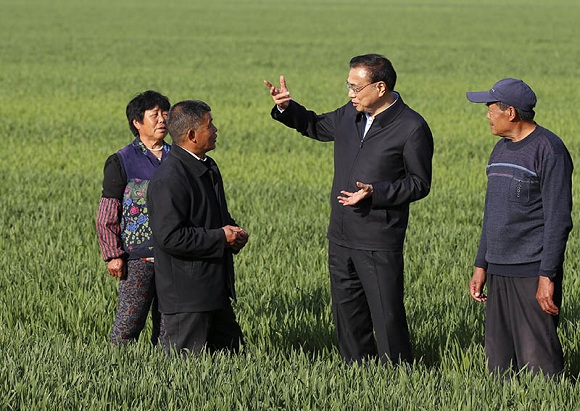 2017年4月20日下午,李克强在山东济南曲家村察看春季小麦长势。