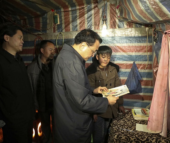 2017年1月23日下午,李克强在云南乌蒙山区昭通余家大冲自然村13村民小组看望贫困村民。
