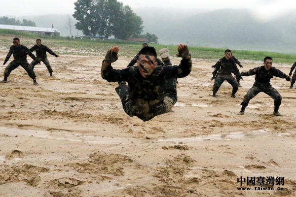 中国台湾网7月20日讯 (记者 陈佳慧)19日上午,第78集团军某特战旅驻训基地突降大雨,平时黄土飞扬的训练场顷刻间一片泥泞。对于突如其来的恶劣气象条件,第78集团军某特战旅将其当做锤炼战斗作风,磨砺部队血性的机会,仍按原计划进行捕俘拳科目演练、特种驾驶训练及反恐演练。参加“同心共筑强军梦”网络媒体国防行活动的部分网络媒体负责人和采编人员,全程观摩了这场雨中演练。