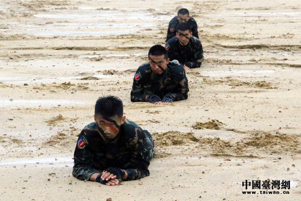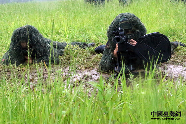 参加反恐演练的狙击手匍匐在泥水里。(中国台湾网 陈佳慧 摄)