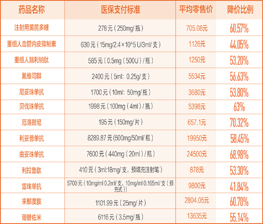 其他药品分别为治疗心血管病、肾病、眼病、精神病、抗感染、糖尿病等重大疾病或慢性病的药物,以及两种罕见病药品即治疗血友病的重组人凝血因子Ⅶa和治疗多发性硬化症的重组人干扰素β—1b。